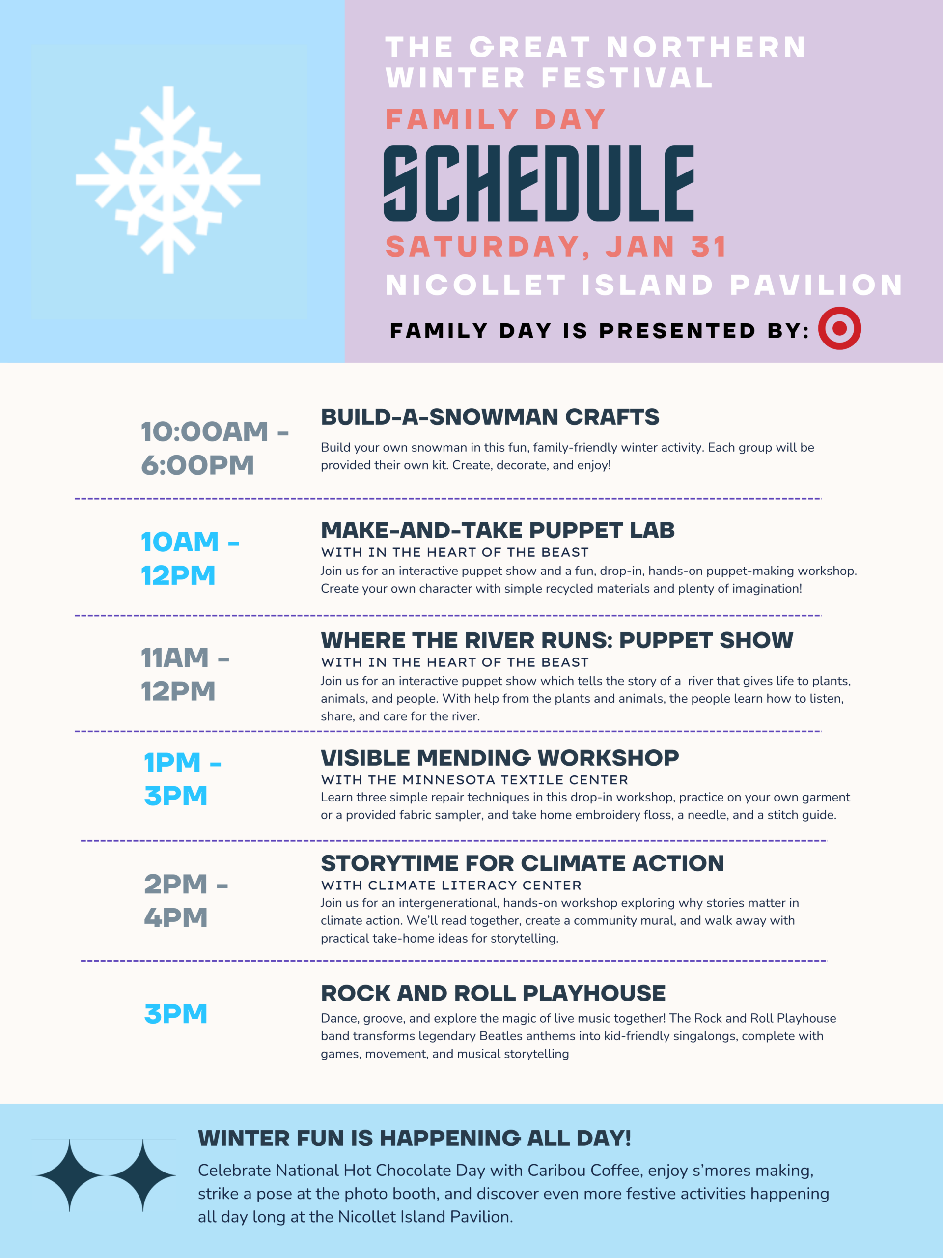 Family Day will be taking place at The Nicollet Island Pavilion.